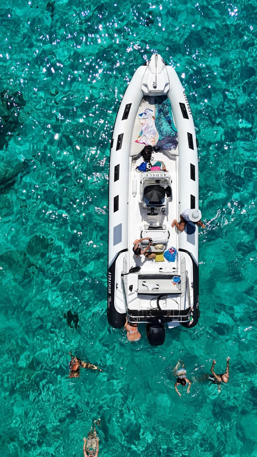 For our rib rental we have chosen the best of Italian nautical design: the Ranieri Cayman 26 Sport. An inflatable boat designed to offer impeccable stability even under fast sailing and ample space for the whole group to relax
